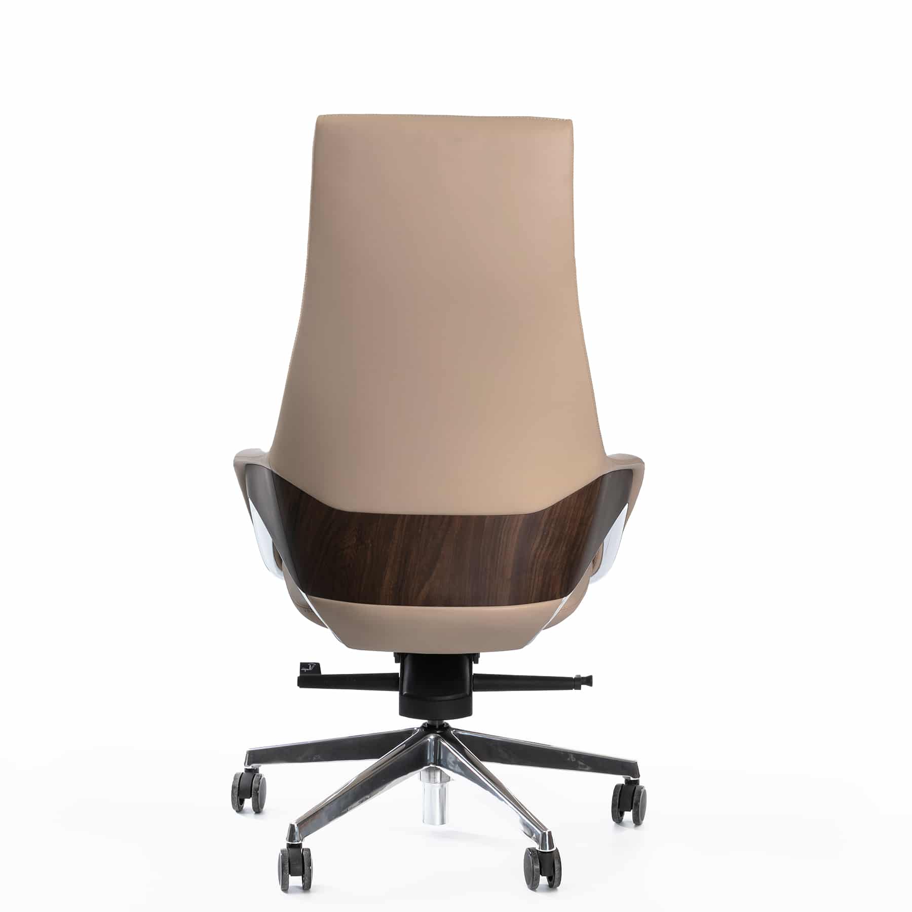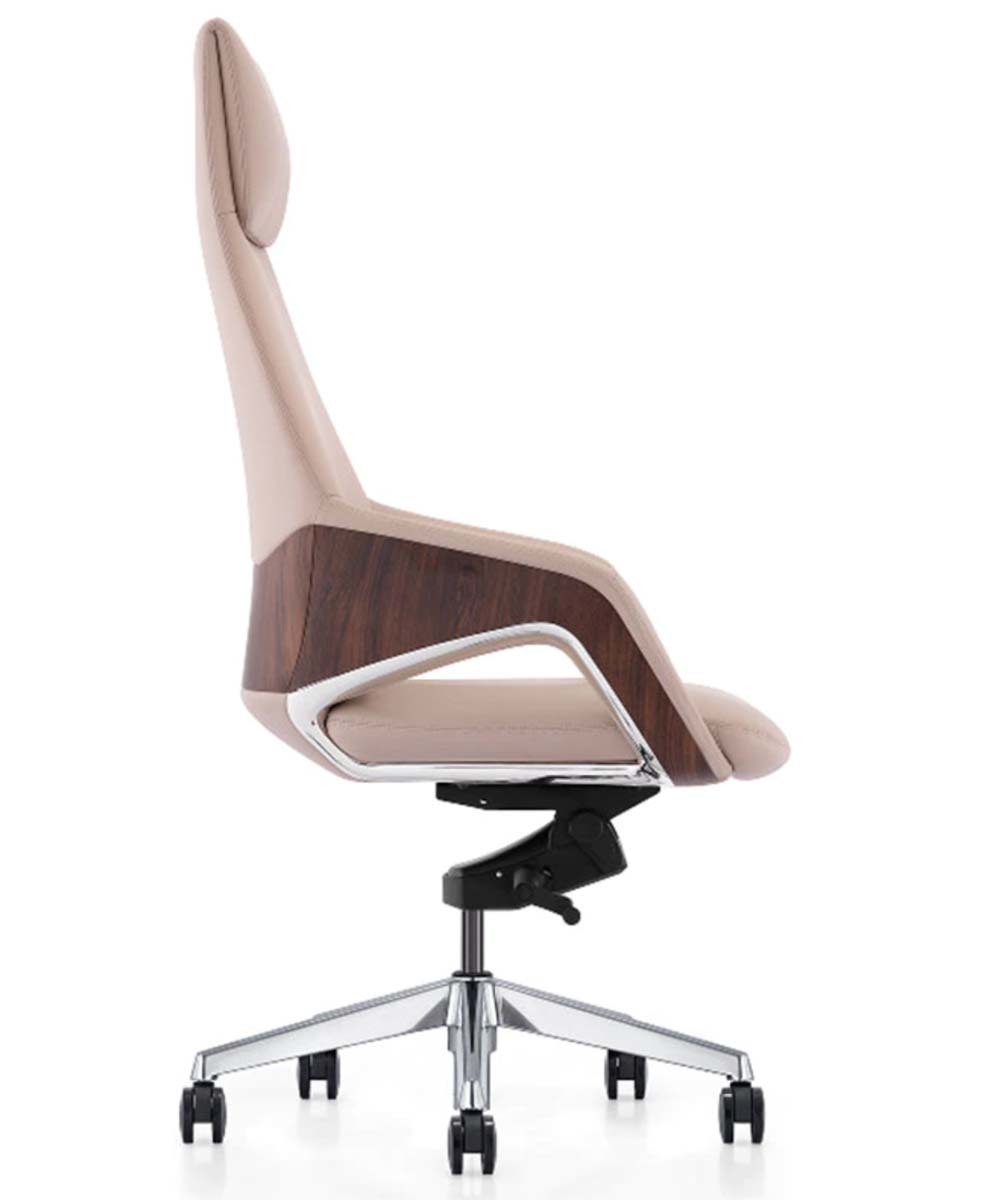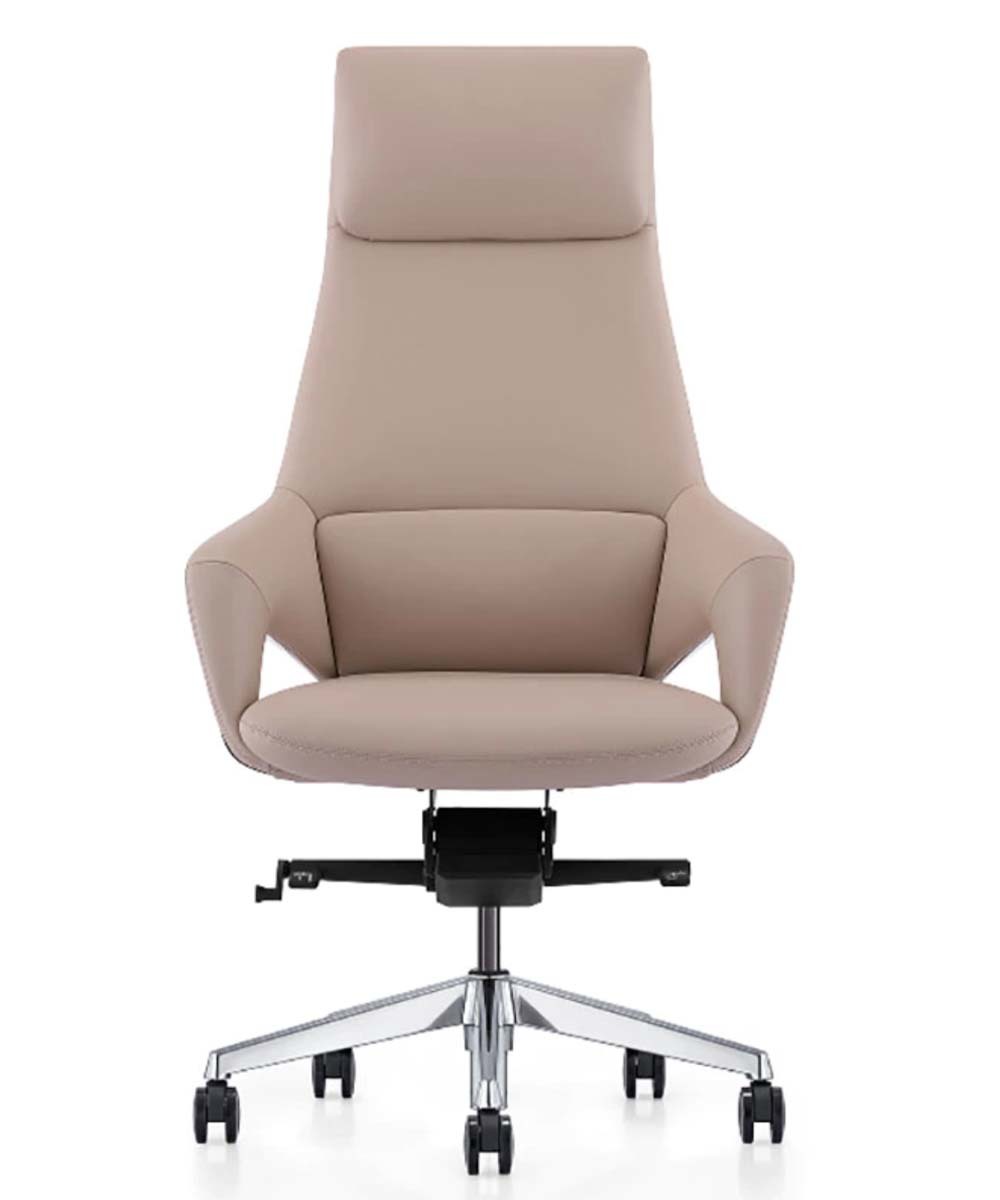 כיסא מנהלים מפנק בעיצוב מודרני, עם גב גבוה וידיות משולבות קשת אלגנטיות.