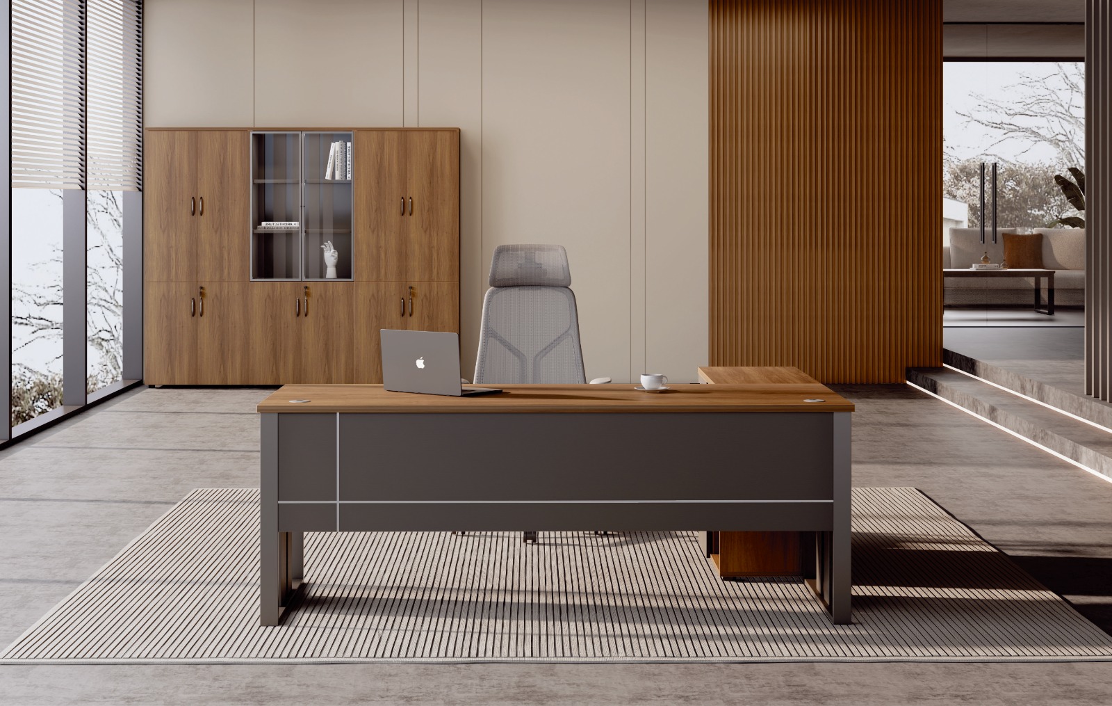 סט יוקרתי למשרד המנהל – עיצוב מודרני, שילוב חומרים חכם, פתרונות אחסון מרשימים.