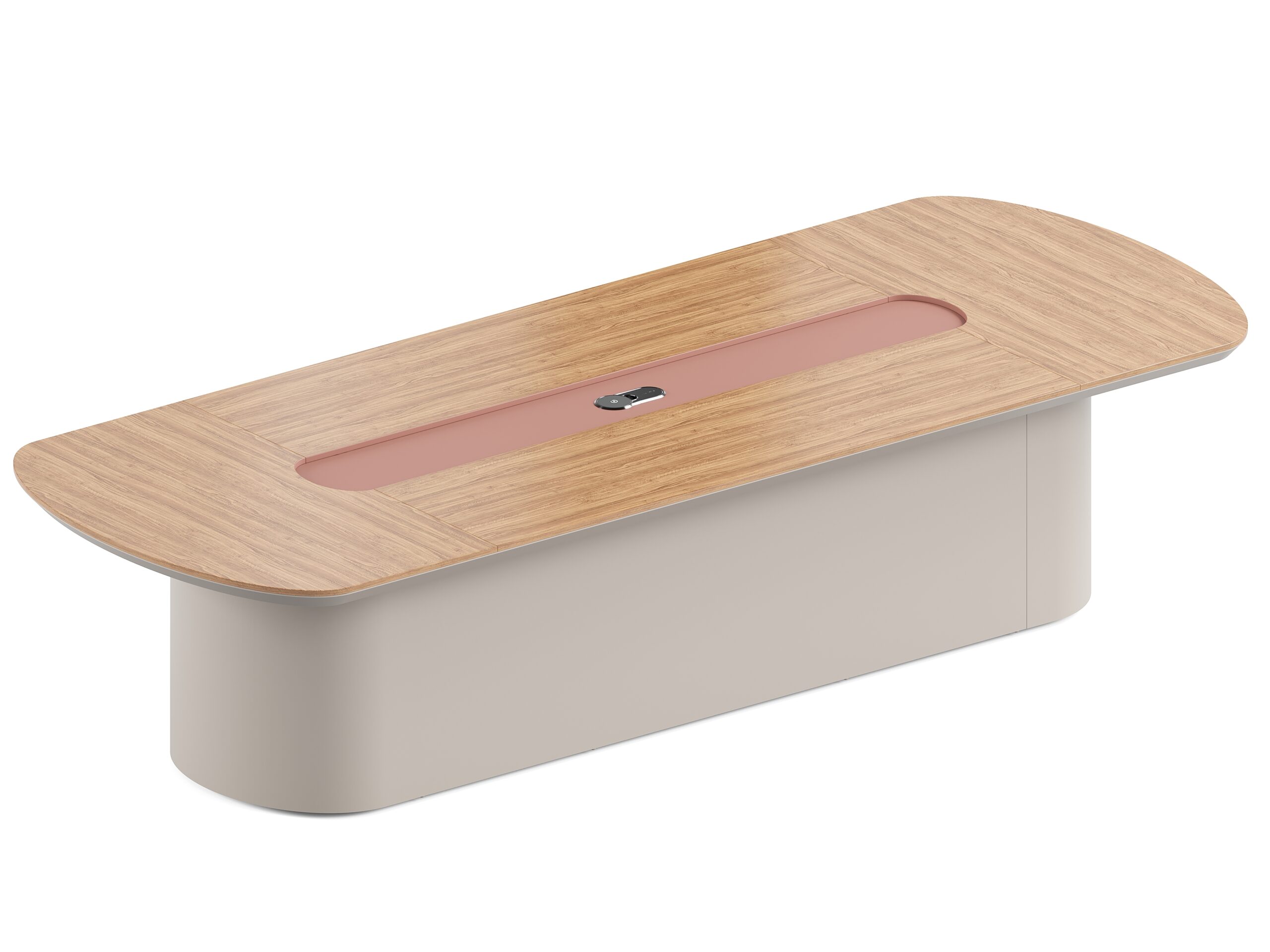 שולחן ישיבות דגם NOVA מרשים , מושלם לחדרי ישיבות, משרדים וחללי עבודה גדולים. המשטח העליון עשוי בגוון עץ טבעי עם פינות מעוגלות ליצירת מראה רך ואלגנטי, ובמרכזו פתח מובנה להעברת כבלי חשמל ותקשורת – אידיאלי למצגות ועבודה עם מחשבים.מידות :