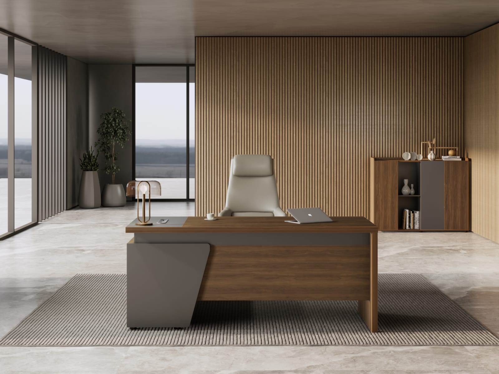 שולחן מנהלים יוקרתי עם שלוחה – דגם ונציה בשילוב עץ ואפור
